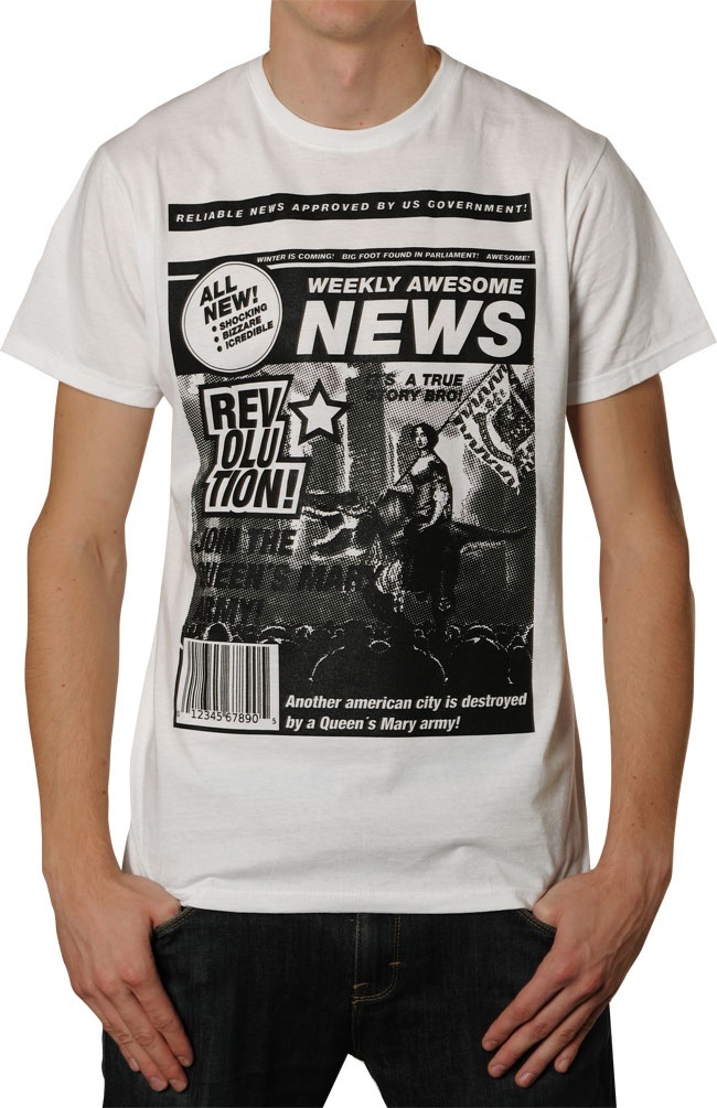 Triko REVOLUTION "NEWSPAPER" - Bílá